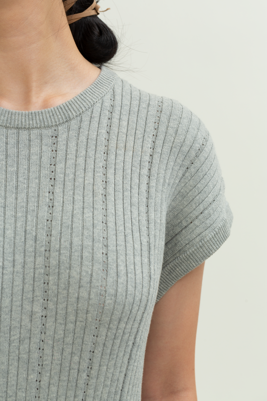 Sold outknit crop round neck top - grey