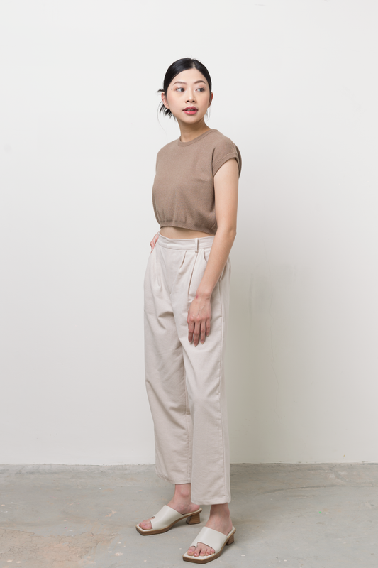 Sold outknit crop round neck top - brown