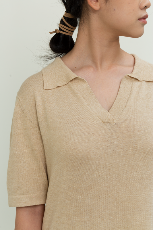 knit collared top - off white