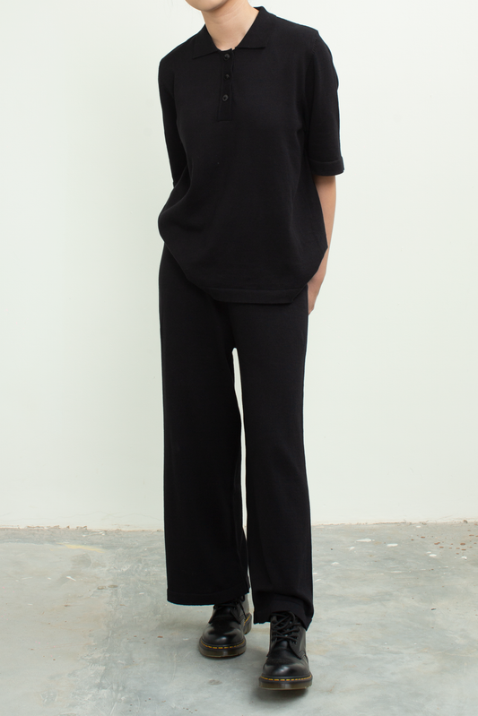 knit long pants - black